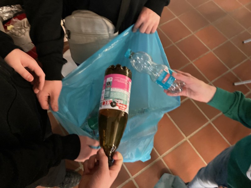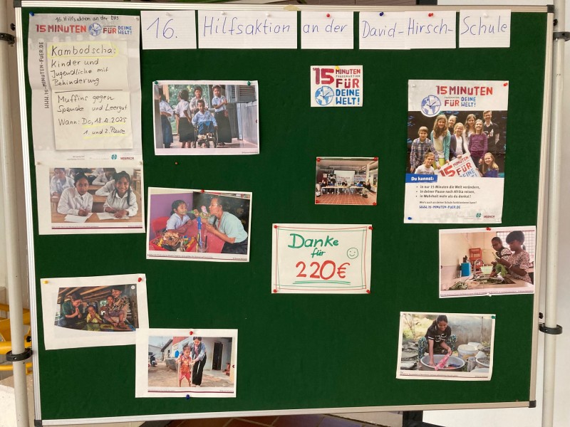 Am Donnerstag, 18.12.2025, haben wir in der ersten Pause und in der zweiten Pause über das Hilfsprojekt in Kambodscha informiert. Wir haben selbstgebackene Muffins verkauft und Leergut gesammelt: Pfandflaschen und Dosen. Dann haben wir das Leergut zum Geschäft gebracht und das Pfandgeld erhalten.